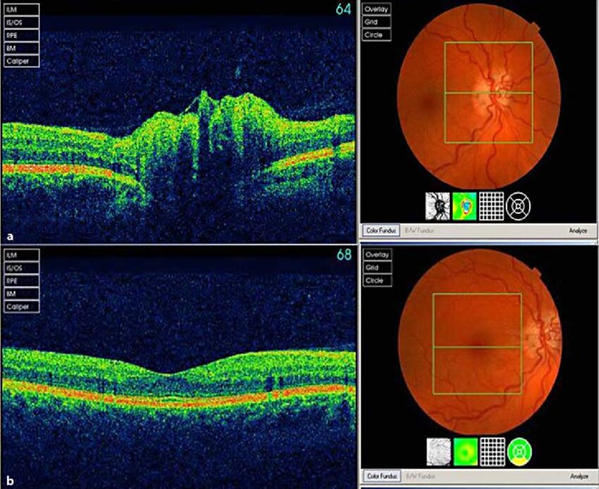 • Gaura Maculară: OCT poate identifica această afecțiune care afectează centrul retinei.