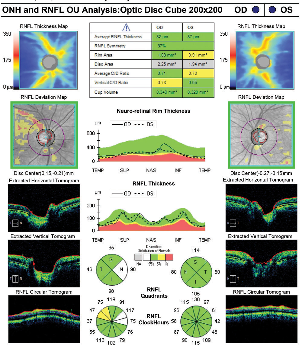 • Glaucomul: OCT ajută la diagnosticarea, monitorizarea și analiza evoluției patologiei.